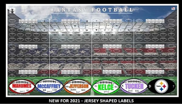 Amazon.com : 2020 Fantasy Football Label Draft Board Kit (Label Size: 2 ... Label Size 2.65" x 1" Over 400 player stickers are included (QB/RB/WR/TE/K/Team D) Folded Paper Draftboard holding 25 rounds! (you choose the style and number of teams) Draft Aids Included: Player List / 1 Owner Draft Day Worksheet / Marker / Bye Week Sticker Thank you for your interest in our product......Have a great draft!